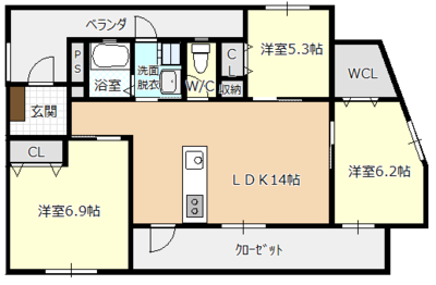 | 間取詳細 | LDK14・洋6.9・洋5.3・洋6.2 |